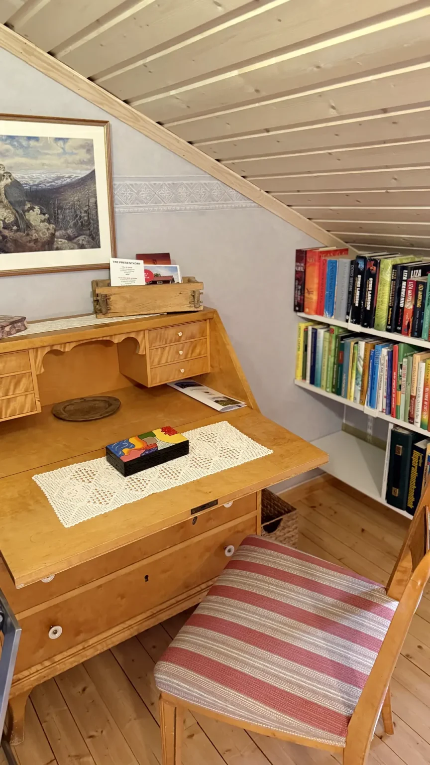 Rummet består av ett sovrum och ett förmak, vilket ger lite mer utrymmeFörmaket har en sittplats och används ofta som läshörna.